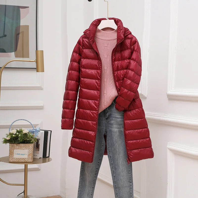 0-10℃ Hood Detachable Winter Coat for Women 2024 Female Puffer Down Jacket Portable Ultralight Long Feather Coat Chaqueta Mujer