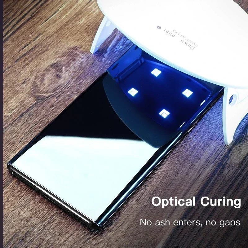 6.The whole set contains: 1-3PCS tempered glass, 1PCS UV lamp , 1-3PCS liquid glue, 1 non-slip mat, 1-3PCS Anti-spill stickers, 1-3PCS screen cleaning kit, 1 small gift.