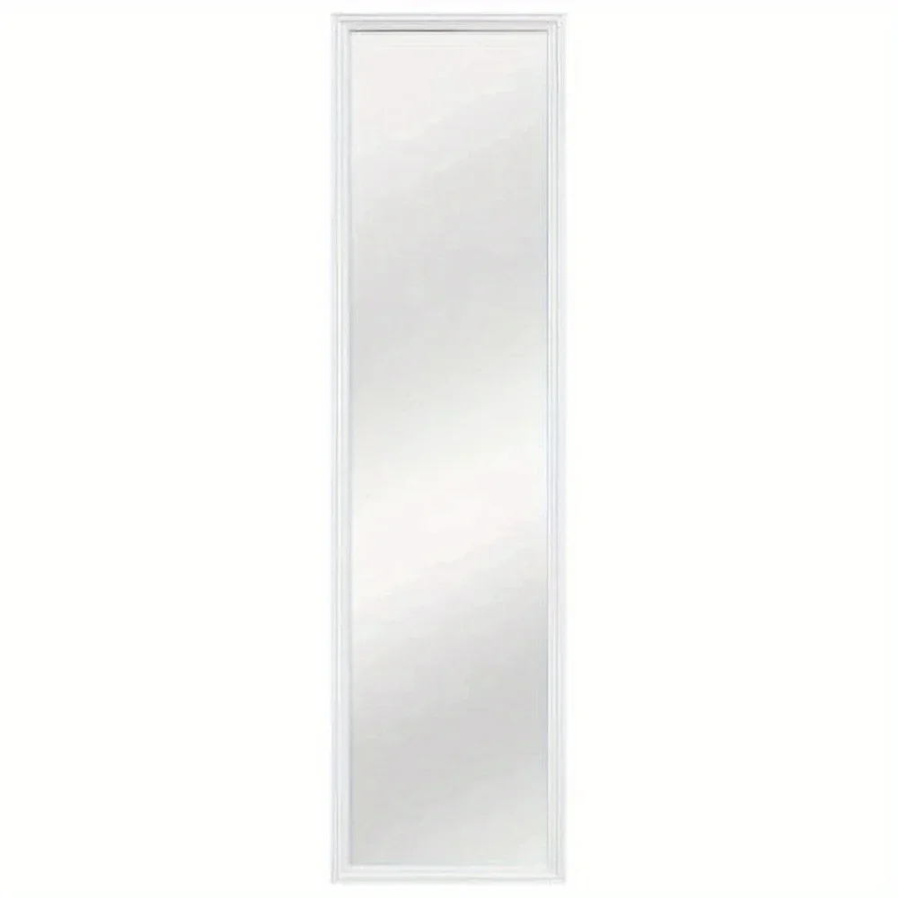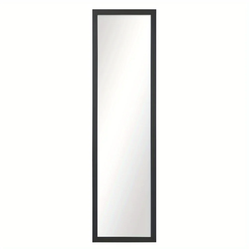 This simple and stylish full-length mirror features a modern black-gold plating and a sturdy plastic frame. The frame is sleek, elegant, and dynamic, further accentuating the glamour of the plating. The mirror is completely dustproof on the back and comes with an easy-to-install metal hanging accessory that allows it to be hung vertically or horizontally. This 13.5 x 49.5-inch black rectangular door mirror will add a touch of color to your home decor. It can be mounted on a wall or behind a door. It can hang multiple and has a wide range of uses, not just as a full-length mirror. It works well anywhere, especially in closets, entryways, bathrooms, dorm rooms, apartments, or condos.