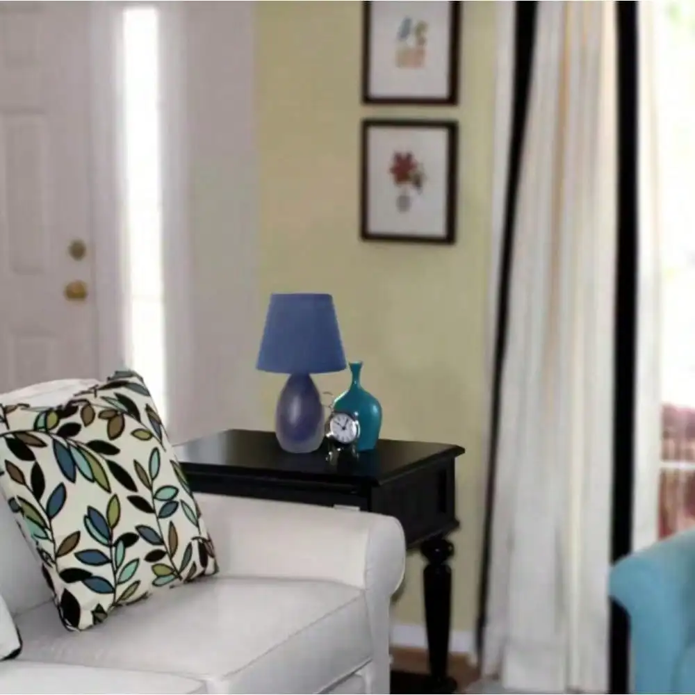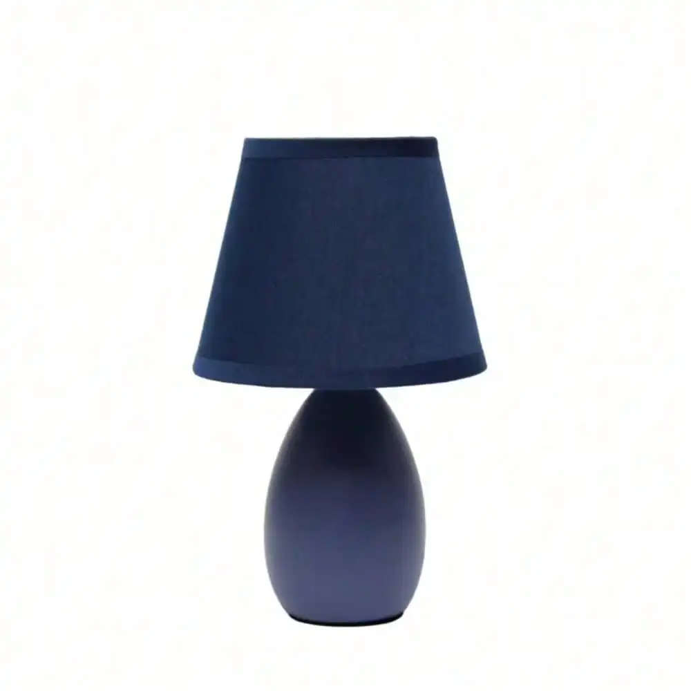 About This Product A lovely, inexpensive, and practical table lamp to meet your basic fashion lighting needs. This mini lamp features an oval shaped ceramic base and matching fabric shade. Perfect for living room, bedroom, office, kids room, or college dorm. Highlights Mini oval ceramic base Matching fabric shade Perfect for living room, bedroom, office, kids room, or college dorm Height: 9.45 in. shade diameter: 5.5 in. Uses 1 x 40-Watt type B candelabra base bulb (not included) LAMP IS A MINI LAMP – PLEASE SEE DETAILS FOR HEIGHT Base Dimensions H: 6.5 x W: 3